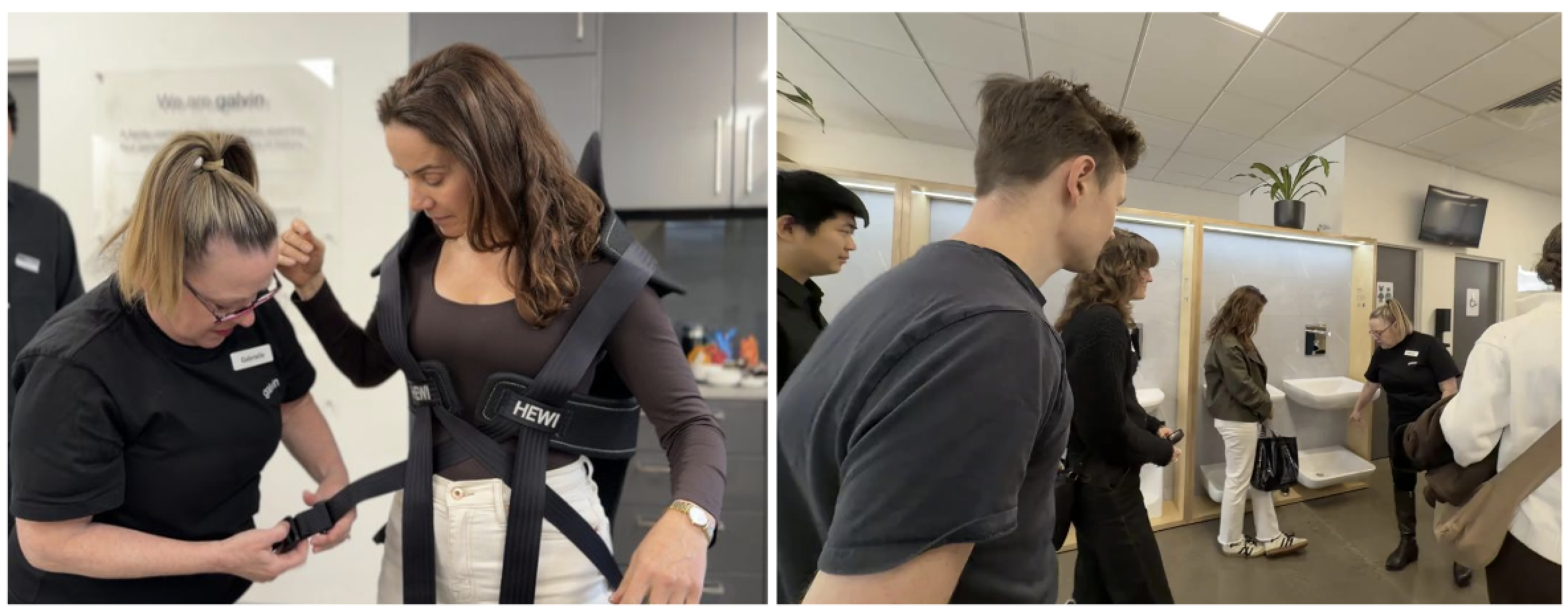HSPC Health Architects recently attended an experiential workshop at the Galvin Experience Centre in Abbotsford. The visit combined a guided tour of Galvin’s specialised tapware, fixtures and health focused product lines with a Dementia Australia learning session designed to place our team directly into the lived experiences of older adults and people living with cognitive decline. The day included a showroom tour, a Dementia Australia presentation and hands on engagement with simulation tools used to understand physical and cognitive limitations . This combination of product knowledge and human experience created a clear link between design intent and design impact.